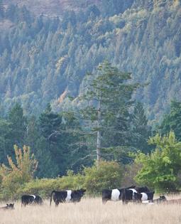 We feed the cows solely with hay harvested from our owned and leased pastures, and the only grain they eat is the spent Brewer's grain from Salt Spring Ales. They love the taste (and buzz:) of it.